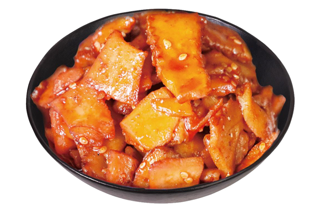 麻辣鮮香,香辣過癮,吃起來有嚼勁,約100 °C計時蒸煮,12小時的調味滲透